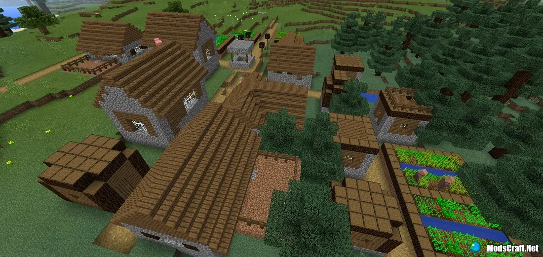 Толком об этой деревне говорить нечего, поскольку в ней нет кузницы, но есть куча грядок с едой, что будет полезно для выживания. А сама деревня выглядит в тёмных тонах, поскольку сделана из брёвен тёмного дуба.