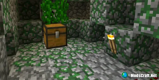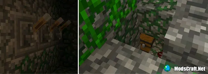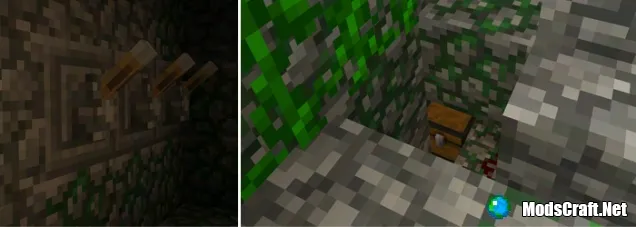 Вернитесь обратно на нижний этаж, чтобы найти ещё один сундук. Его очень легко найти. Просто следите за ловушками, если вы играете в режиме выживания. Во второй сундук вы найдете:
