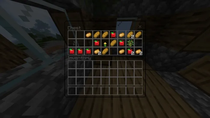 Здесь есть церковь с варочной стойкой и небольшой домик с яблоками, картофелем и хлебом.