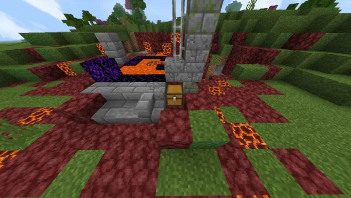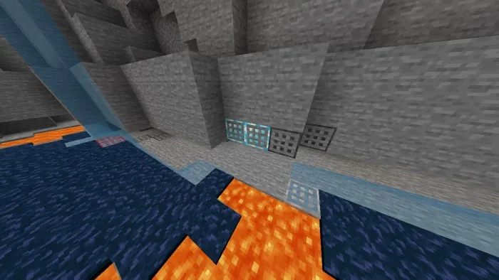 На изображении выше вы можете видеть, что ущелье появляется справа от деревни. В нём находится шахта. Автор оставил шахту неисследованной, так что вам придётся выяснить, какая добыча находится внутри (там есть несколько алмазов, сидящих на самом дне).