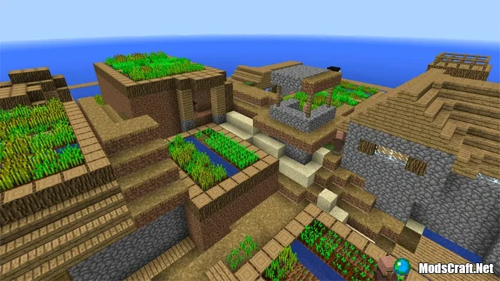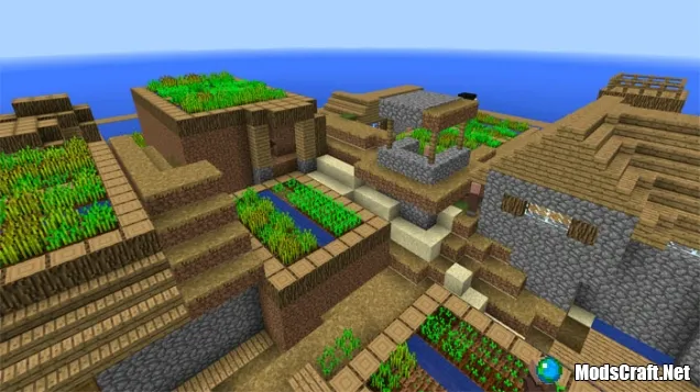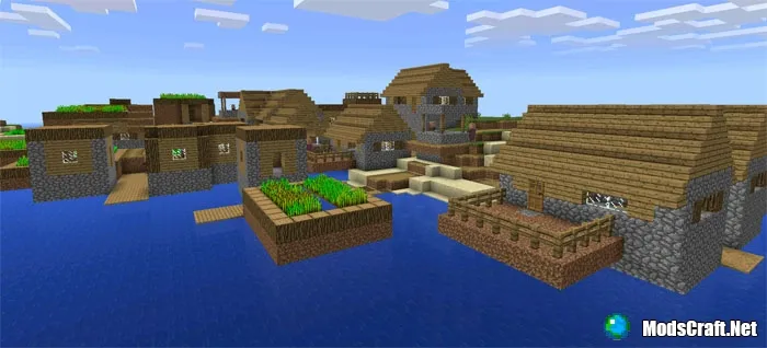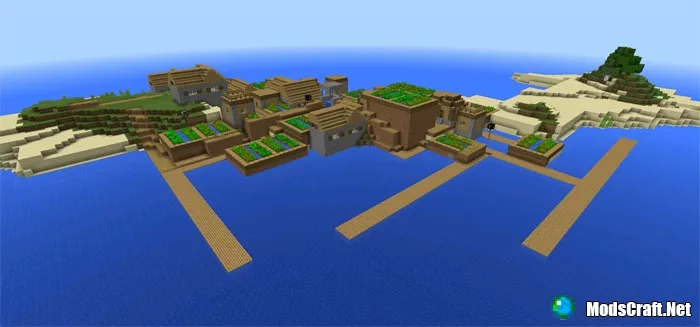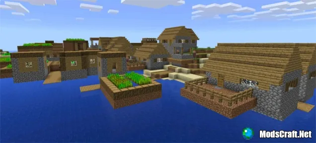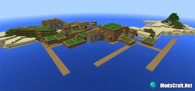 С этим сидом для Minecraft PE вы появитесь на небольшом острове, но большим сюрпризом является то, что вы заспаунитесь прямо в двойной деревни! Деревни включают большое количество ферм и домов, но к сожалению ни в одной деревни нет кузницы.