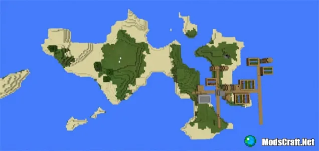 С данным сидом для Minecraft PE Вы окажетесь на острове средних размеров, возле которого сможете обнаружить двойную подводную крепость!