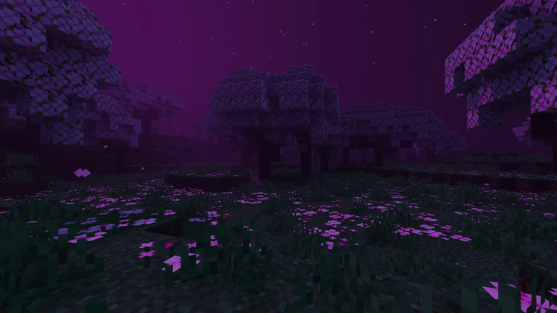 - Уникальный цвет неба: в некоторых биомах, таких как вишнёвые рощи, болота и джунгли, появляется особое небо