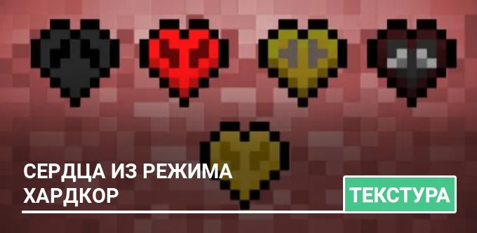 С текстурами Hardcore Hearts для Майнкрафт ваши сердца здоровья поменяются на сердца из режима хардкор…
