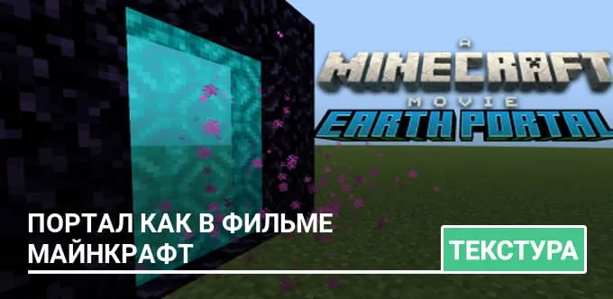 Текстуры Earth Movie Portal Texture Over Nether Portal меняют стандартный портал в Нижний Мир на стильный бирюзовый вариант из фильма «Minecraft в кино»…