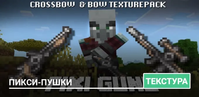 Текстур пак Pixi Guns заменяет лук, арбалет и стрелы на модели огнестрельного оружия с новыми звуками и английскими названиями…