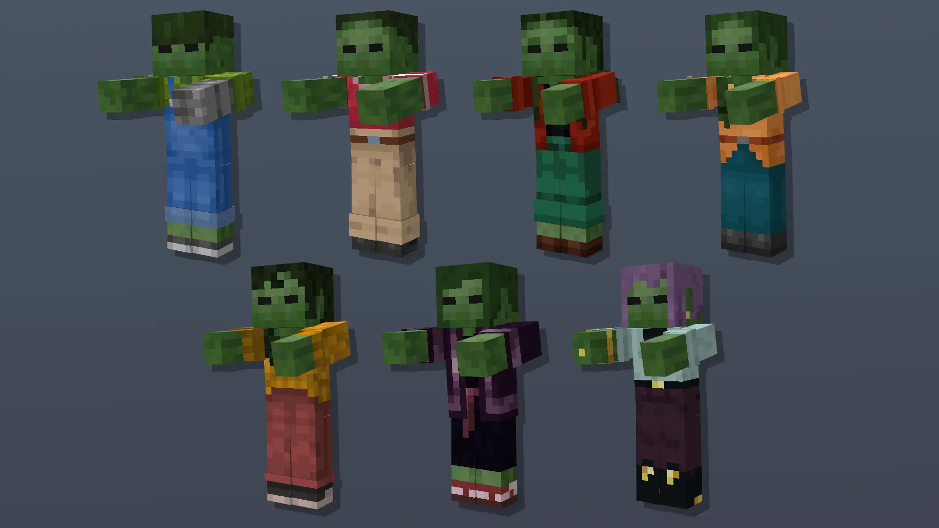 Надоели унылые и обычные зомби? Попробуйте текстур пак Better Zombies, который добавляет 75 обычных и 15 редких вариантов зомби, зависящих от биома, таких как болотные, джунглевые и снежные зомби. Откройте новых врагов и разнообразьте свой мир Minecraft!