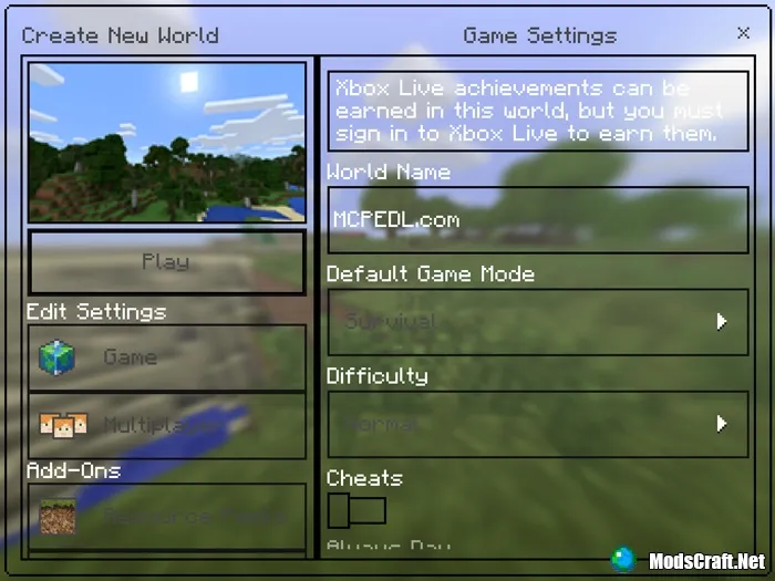- Откройте Minecraft Pocket Edition и перейдите в настройки игры.