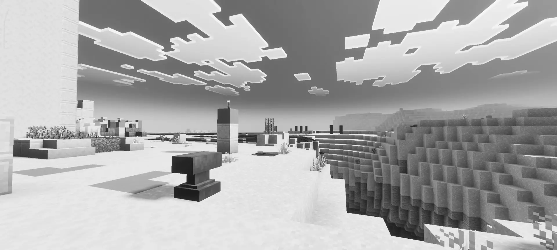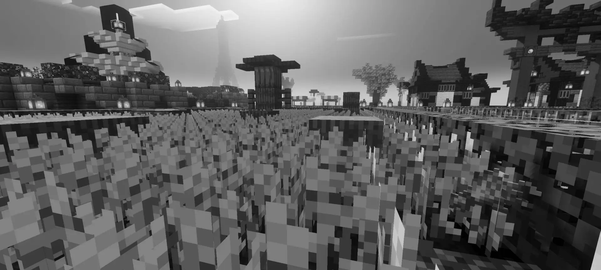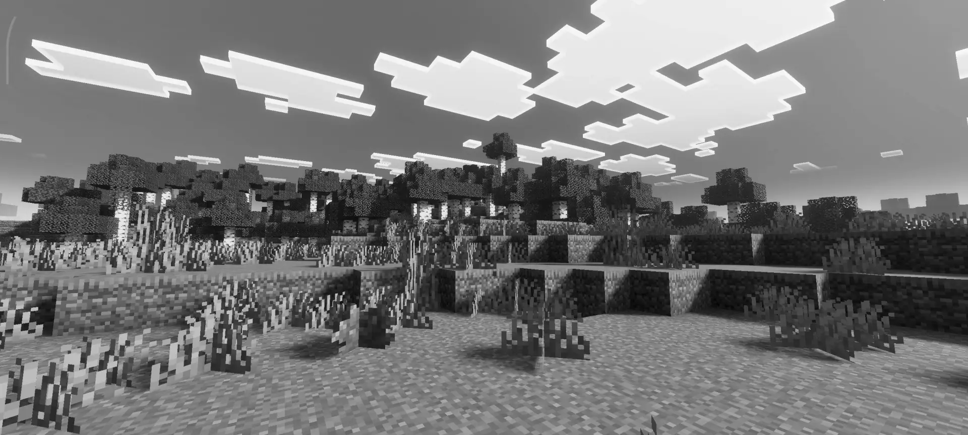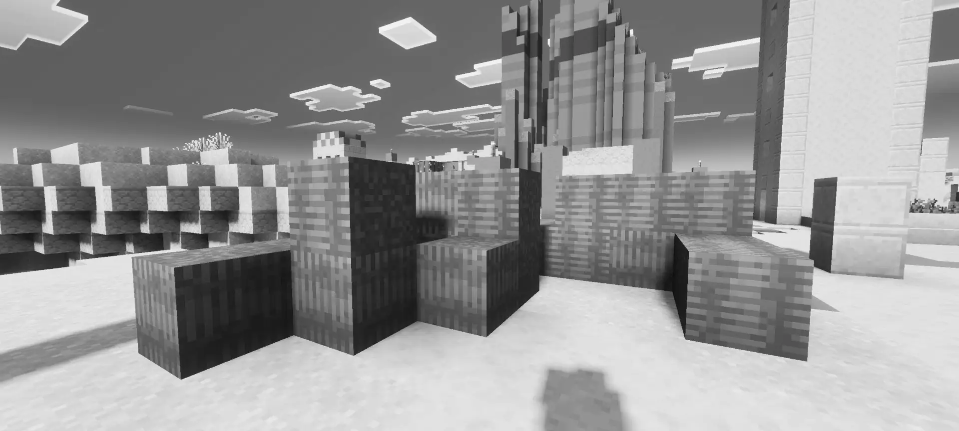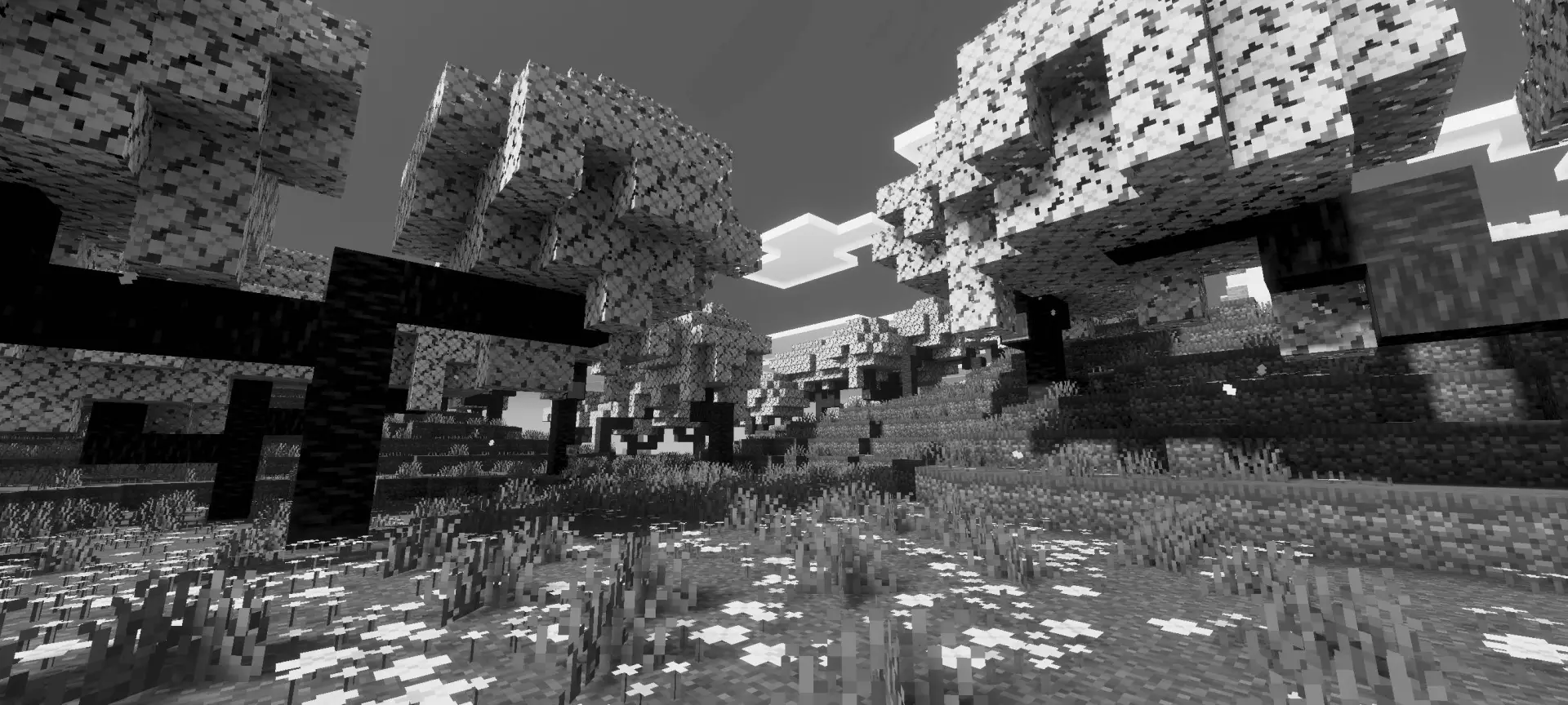 С текстур паком Black & White Visuals цвета вашего мира Майнкрафт станут чёрно-белыми, делая игру игру сложнее и интереснее. У этих текстур можно выбрать цвет неба: обычный или чёрно-белый, выбери свой вариант и попытайтесь выжить в новых цветах!