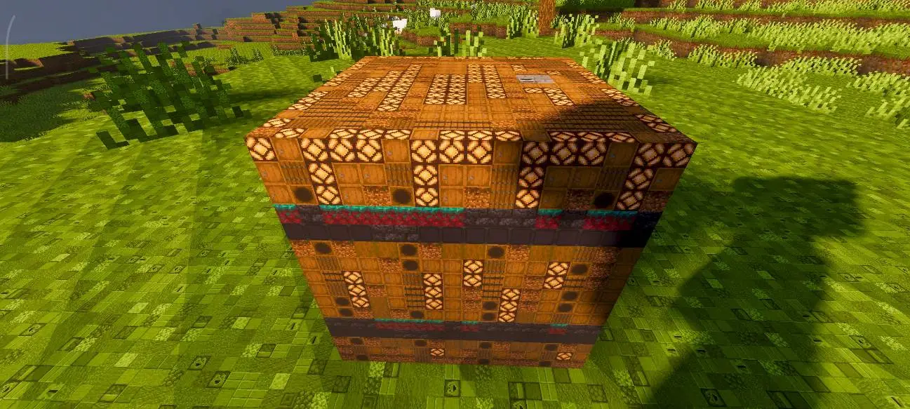 Текстур пак Blocks In Blocks Renewed добавляет необычный визуальный стиль, в котором каждый блок выглядит составленным из множества мелких деталей. Каждый блок состоит из мелких миниатюрных блоков, что делает их уникальными, красивыми и интересней.