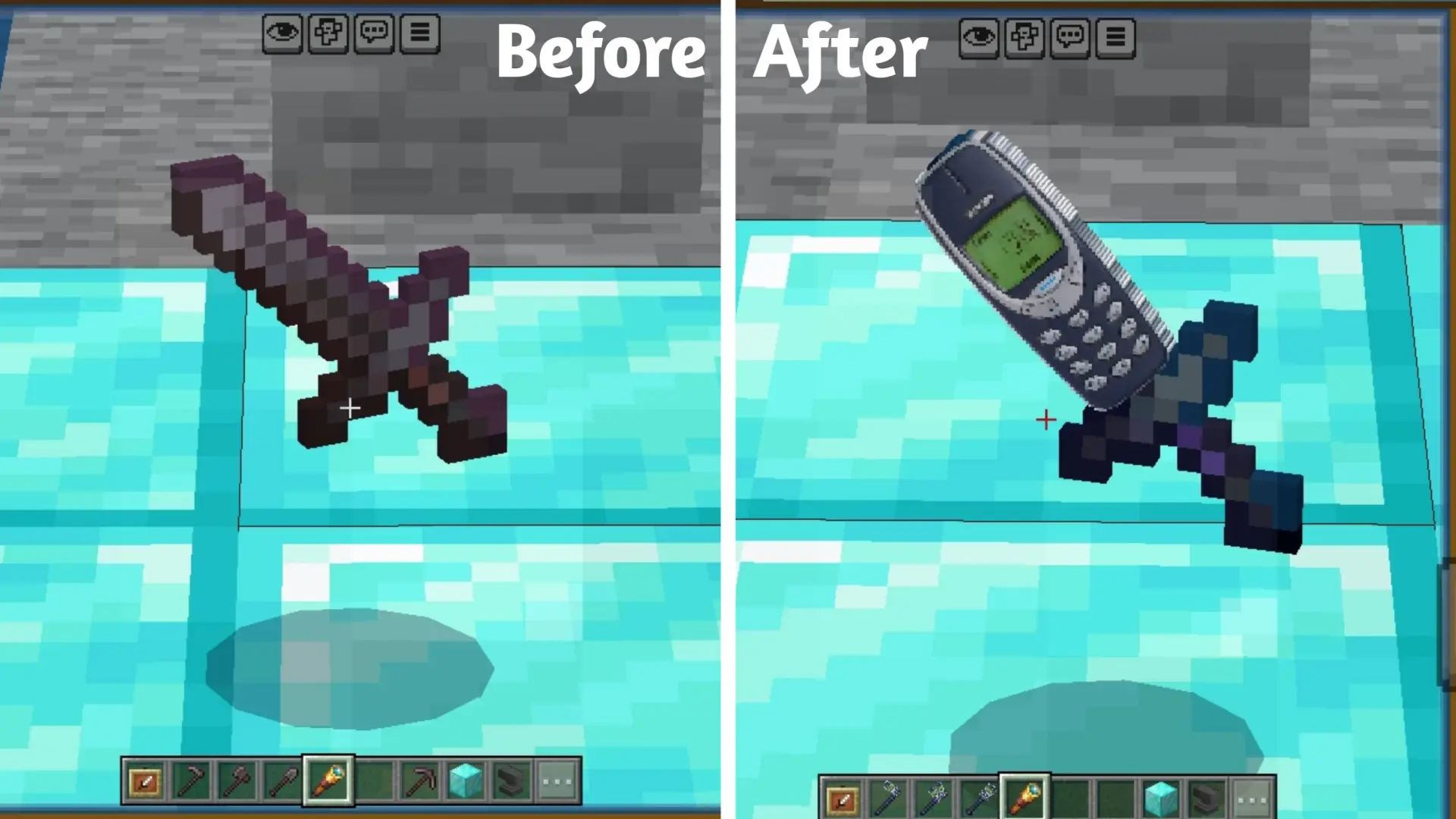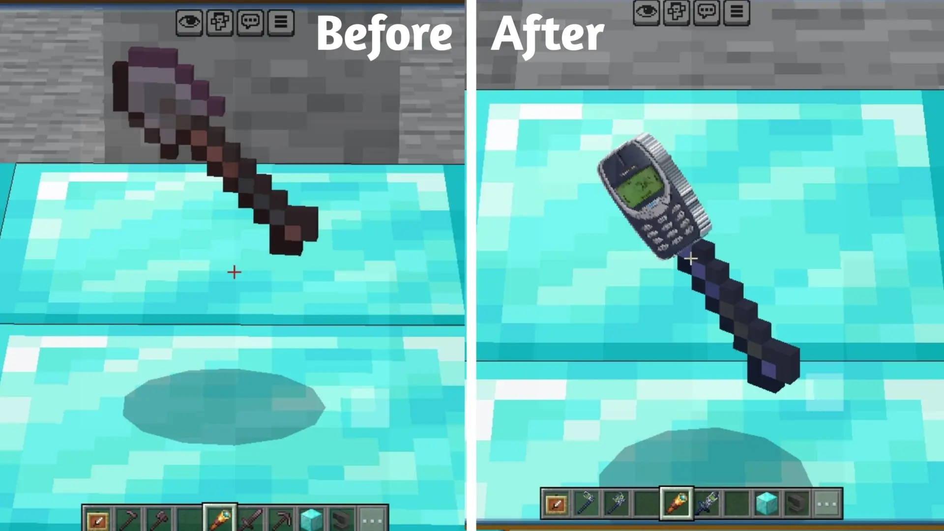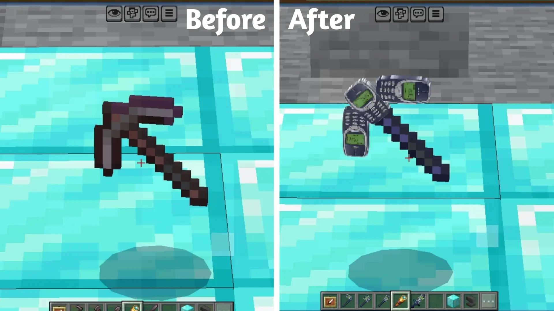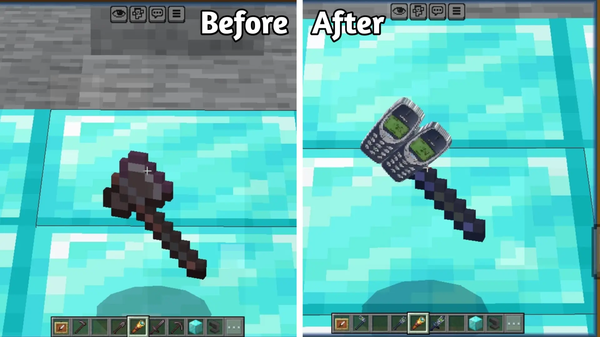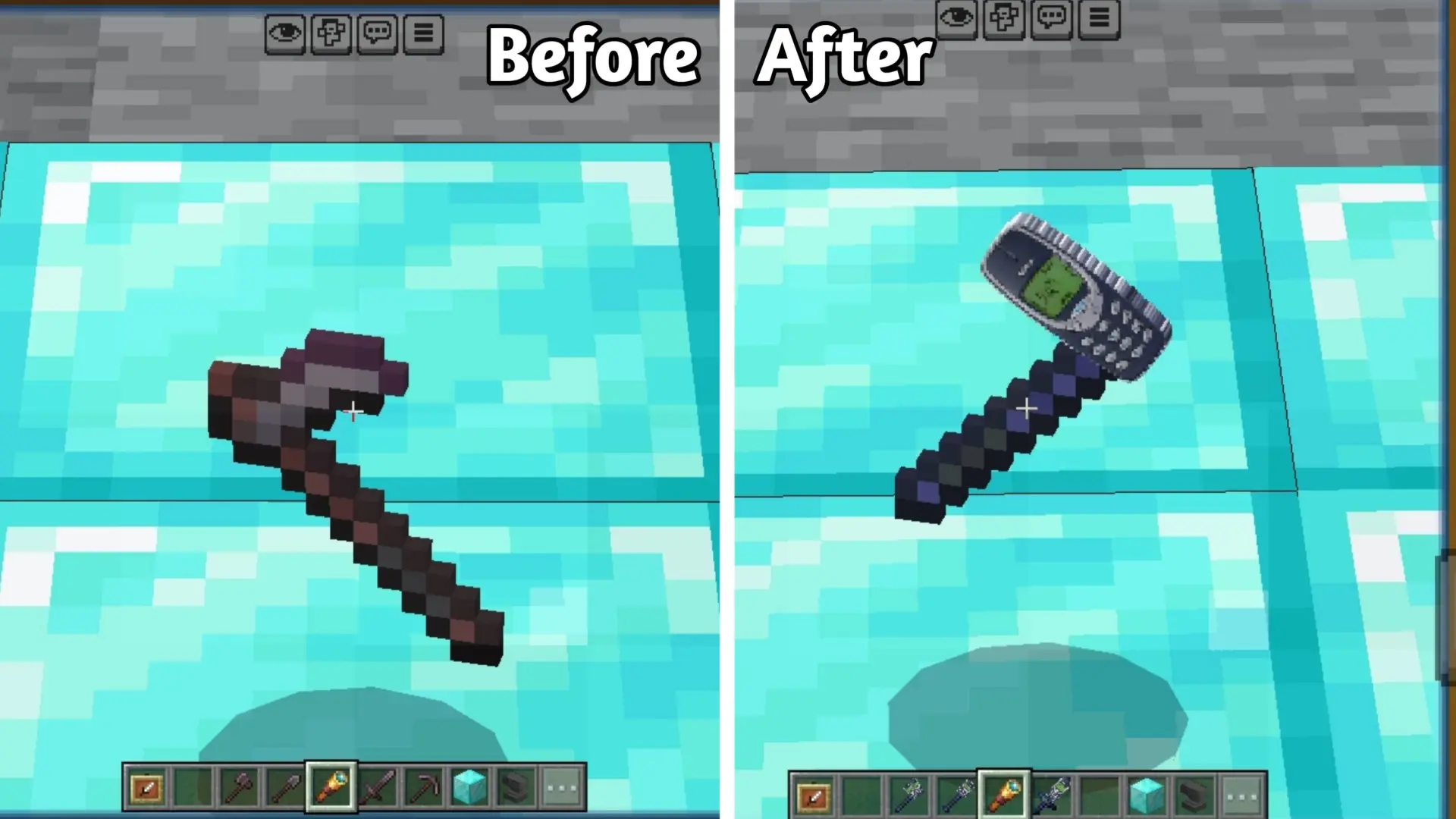 Текстуры Nokia Tool заменяют внешний вид всех незеритовых инструментов на стиль знаменитого телефона Nokia 3310. Они выглядят детально и оптимизированы для плавного геймплея.