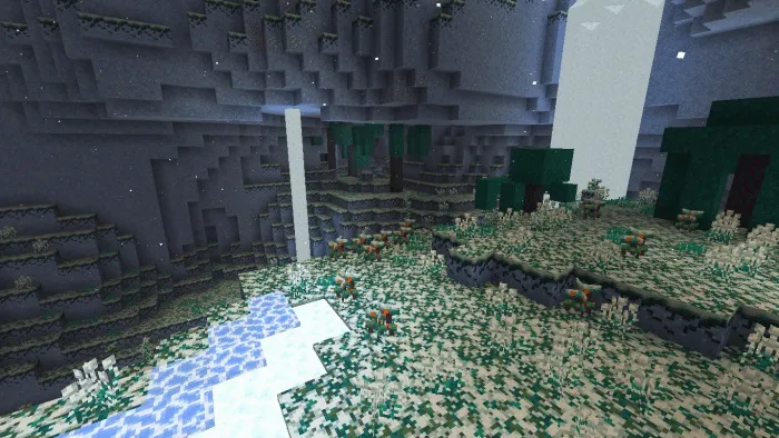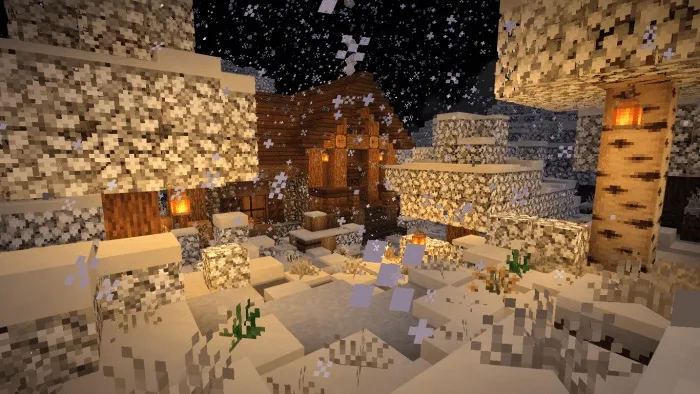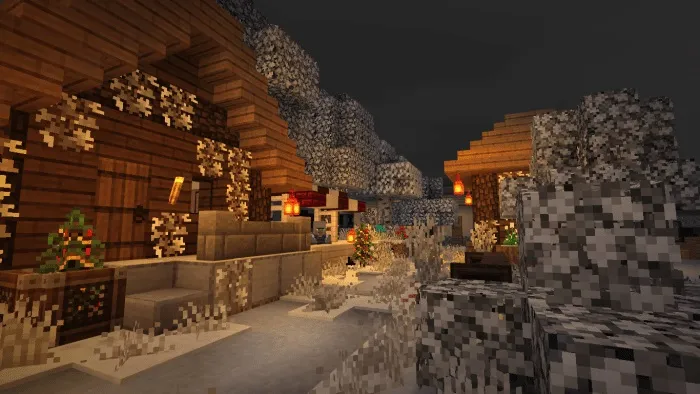 Также были изменены текстуры блоков Незера и Края и туман в них для создания зимней атмосферы.