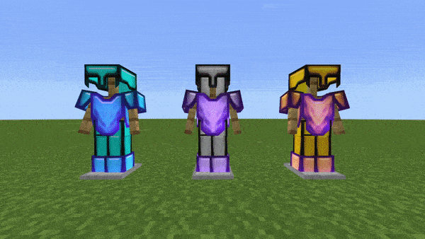 Также есть 2 отдельных анимированных подпакета брони на выбор. Первый накладывает на броню эффект волны, а второй делает алмазную броню разноцветной.