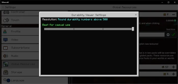 Текстур пак Durability Viewer добавляет счётчик прочности на панель быстрого доступа, в сетку брони и при нажатии на предметы. Этот пакет ресурсов совместим с несколькими популярными пакетами ресурсов пользовательского интерфейса и должен работать сразу после установки на всех устройствах, а также в профилях пользовательского интерфейса как карманного, так и настольного компьютера.