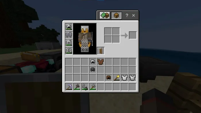 В сетке брони и в слоте для левой руки есть маленькие числа в верхнем левом углу предмета, которые показывают текущую долговечность инструмента. Они также обновляются в режиме реального времени.