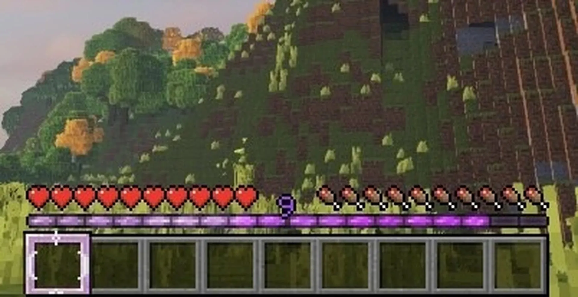 Эти текстуры изначально создавались под Java версию игры, затем ее перенесли в бедрок версию. Дополнение изменит полоску опыта, предавая ей пурпурный градиент. Еще поменяется прицел, который будет похож на тот, что используется в шутерах.
