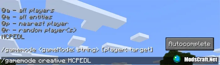 Кнопка Autocomplete отображается на экране чата. Вы можете нажать на эту кнопку, чтобы быстро заполнить какую-то команду.