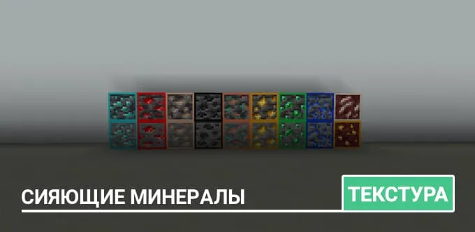 Эти текстуры делают руды и минералы видимыми в темноте, добавляя яркое свечение и привлекающий внешний вид…