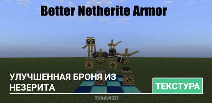 Эти текстуры обновляют броню из незерита, добавляя реалистичный эффект свечения и гармоничную золотую отделку!…