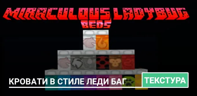 С этими текстурами все кровати в игре будут иметь текстуры, которые напоминают талисманы из мультсериала "Леди Баг"…