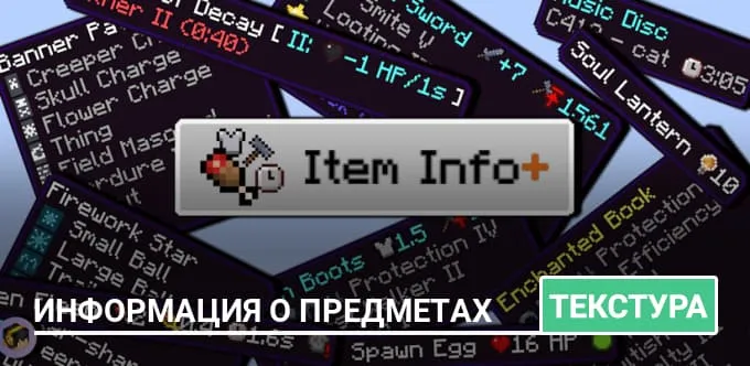 С текстурами Item Info+ появится возможность узнать ценность предмета, оставшееся время его использования и текущую прочность…