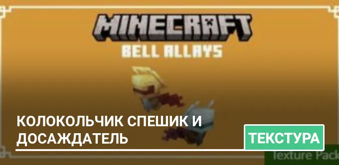 С текстур паком Bell Allays and Vexes внешний вид Спешика и Досаждателя будут обновлены, напоминая милые колокольчики…